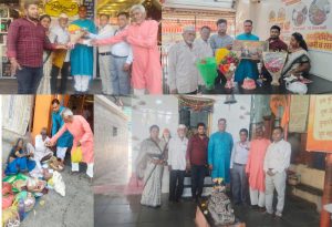 दर्पण न्यूज लातूर : प्रेस संपादक पत्रकार सेवा संघ लातूर जिल्हा शाखेच्या वतीने मंदिरासमोर व रस्त्यावर बसणाऱ्या गरीब व्यक्तींना नुकतेच फळांचे वाटप करण्यात आले. केवळ सामाजिक भानेतून व लहूकुमार शिंदे यांच्या वाढदिवसाचे औचित्य साधून लातूर शहरातील डॉ. अण्णाभाऊ साठे चौकातील सोन्या मारुती, राम मंदिर, हनुमान चौकातील हनुमान मंदिर या ठिकाणी बसलेल्या गरजू व्यक्तींना केळी, चिक्कू आदी फळांचे वाटप करण्यात आले. याप्रसंगी ॲड. अंगद गायकवाड म्हणाले की, प्रेस संपादक व पत्रकार सेवा संघ ही संघटना पत्रकारांची तर आहेच पण सामान्य जनतेसाठी असे वेगवेगळे उपक्रम राबवत आहे म्हणून ही संघटना विशेष असल्याचे सांगितले. यावेळी साहित्यरत्न डॉ अण्णाभाऊ साठे समाजभूषण पुरस्कार प्राप्त नागनाथ कांबळे, जिल्हा अध्यक्ष लहूकुमार शिंदे, राष्ट्रप्रेमचे संपादक भुजंग कांबळे, धाराशिवचे ज्येष्ठ नागरिक भागवत भरगंडे, ॲड. अंगद गायकवाड, ॲड मधुकर कांबळे, साहित्य सम्राटचे संपादक पंडित हणमंते, पत्रकार सारिका चुंगे, प्रवीण हजारे, आकाश हळकुंडे, शेषेराव गवळी, अभिषेक माने, प्रेस संपादक व पत्रकार सेवा संघाचे पदाधिकारी, पत्रकार, आदी मान्यवर उपस्थित होते.