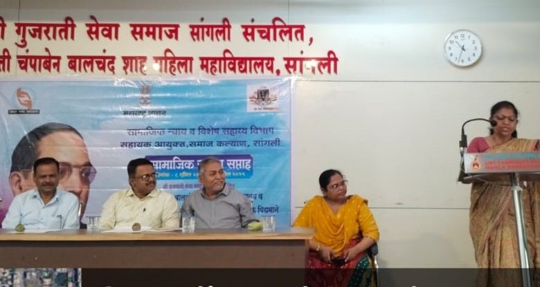 दर्पण न्यूज सांगली : सामाजिक समता सप्ताह निमित्त आज चंपाबेन बालचंद शहा महिला महाविद्यालय, सांगली येथे भारतरत्न डॉ. बाबासाहेब आंबेडकर यांनी महिलांसाठी केलेल्या कार्याबाबत माहिती देण्यासाठी महिला मेळाव्याचे आयोजन करण्यात आले.
