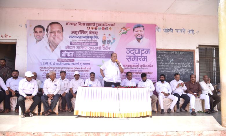 कोल्हापूर जिल्हा राष्ट्रवादी युवक काँग्रेस पार्टी, माजी उपनगराध्यक्ष नितीन दिंडे, अथायु हॉस्पिटल, कोल्हापूर यांच्या संयुक्त विद्यमाने आरोग्य शिबीर ; वैद्यकीय शिक्षण मंत्री हसन मुश्रीफ यांच्या हस्ते उद्घाटन