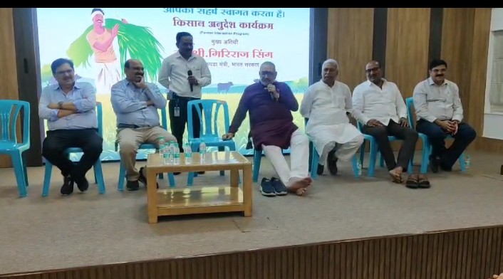 यावेळी दुध उत्पादक शेतकऱ्यांशी त्यांनी संवाद साधत गिरीराजसिंह यांनी गाई म्हैशीच ,संगोपन तिच्यापासून मिळणारे दुग्ध उत्पादन,शेतकऱ्यास होणारा फायदा,येणाऱ्या विविध अडचणी यासंदर्भात शेतकऱ्यांशी संवाद साधून सविस्तर चर्चा केली.त्यांनी स्वतः केलेल्या विविध प्रयोगविषयी माहिती दिली.चितळे डेअरीचे संचालक विश्वास चितळे यांनी प्रास्ताविक व स्वागत करून,चितळे डेअरीच्या वतीने शेतकऱ्यांसाठी आयोजित केलेल्या उदय,किरण,भास्कर या प्रशिक्षण कार्यक्रमाविषयी सविस्तर माहिती दिली. बिहार विधानसभेचे आमदार सर्वेश कुमार,माजी खासदार संजयकाका पाटील,श्रीपाद चितळे,अनंत चितळे,मकरंद चितळे,निखिल चितळे,अतुल चितळे,पुष्कर चितळे आदी उपस्थित होते.पशुसंवर्धन अधिकारी डॉ.एच.आर.इंगळे, डॉ.सी. व्ही.कुलकर्णी यांनी सूत्रसंचालन केले.चितळे डेअरीच्या कार्य क्षेत्रातील विविध गावातील उत्पादक शेतकरी बंधू -भगिनी,कामगारवर्ग उपस्थित होता.