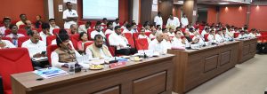 जिल्हाधिकारी अशोक काकडे यांनी पालकमंत्री व अन्य मान्यवरांचे स्वागत केले. जिल्हा नियोजन अधिकारी अशोक पाटील यांनी प्रास्ताविक केले. वडाच्या रोपास पाणी घालून बैठकीस प्रारंभ करण्यात आला.