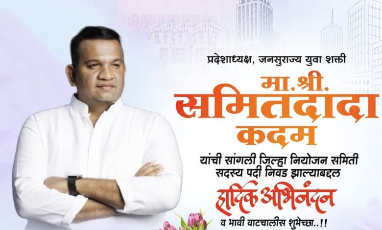 जनसुराज्य चे प्रदेशाध्यक्ष मा. समितदादा कदम यांची सांगली जिल्हा नियोजन समिती सदस्य पदी निवड