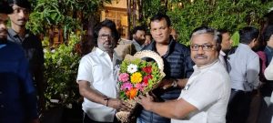 मिरज येथे ज्युनिअर रजनीकांत ऊर्फ टेलर वेल्फेअर असोसिएशनचे महाराष्ट्र राज्य अध्यक्ष बसवराज पाटील यांच्यावतीने जनसुराज्य शक्ती पक्षाचे प्रदेशाध्यक्ष समीत दादा कदम यांना वाढदिवसानिमित्त शुभेच्छा