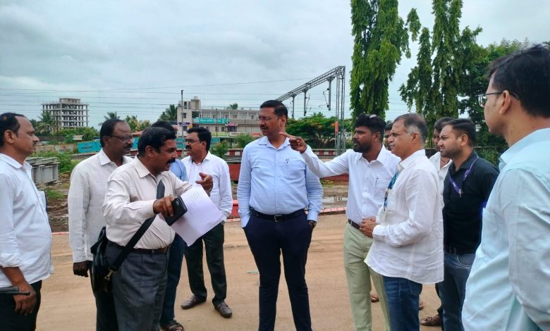 किर्लोस्करवाडी रेल्वे उड्डाणपुलाच्या कामाची प्रांताधिकारी रणजित भोसले यांच्याकडून पाहणी ; चुकीच्या पद्धतीने कामे ; अख्तर पिरजादे यांचे आंदोलन