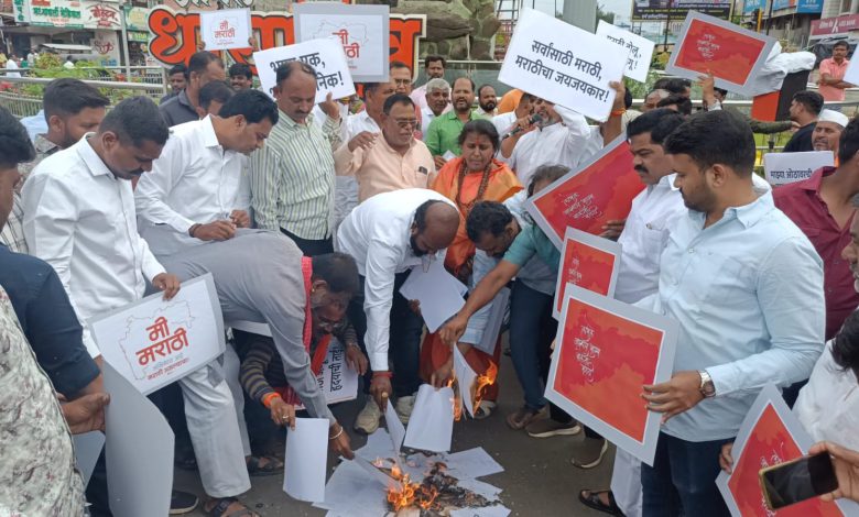 हिंदी सक्तीच्या विरोधात धाराशिवमध्ये शासन आदेशाची होळी; ‘मराठी माणूस’ रस्त्यावर