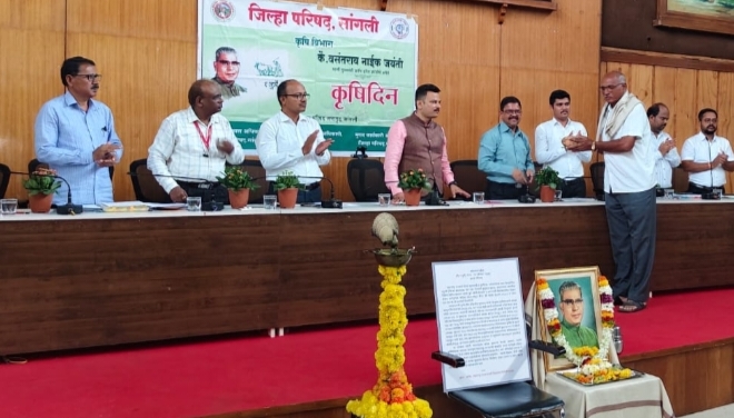 महाराष्ट्राचे माजी मुख्यमंत्री कै. वसंतराव नाईक यांच्या जयंतीनिमित्त १ जुलै हा दिवस जिल्हा परिषद सांगली आणि जिल्हा अधिक्षक कृषि अधिकारी सांगली यांच्या संयुक्त विद्यमाने जिल्हा परिषदेच्या वसंतरावदादा पाटील सभागृहात अतिरिक्त मुख्य कार्यकारी अधिकारी निखिल ओसवाल यांच्या अध्यक्षतेखाली कृषि दिन म्हणून साजरा करण्यात आला. त्यावेळी ते बोलत होते. यावेळी कृषि उपसंचालक धनाजी पाटील, कृषि संशोधन केंद्र कसबे डिग्रज येथील शास्त्रज्ञ डॉ.सुनिल महाजन, विभागीय कृषि सहसंचालक कार्यालयातील अधिक्षक कृषि अधिकारी अजय कुलकर्णी, प्रकल्प संचालक आत्मा अभयकुमार चव्हाण, मिरज तालुका कृषि अधिकारी मिलिंद निंबाळकर, जिल्हा परिषद कृषि विभागाचे मोहिम अधिकारी अमोल आमले आदि उपस्थित होते.