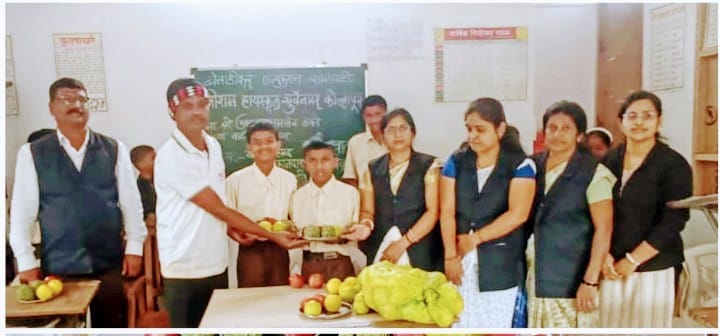 कोल्हापूरातील श्रीराम हायस्कूलमध्ये उद्धव ठाकरे यांच्या वाढदिवसानिमित्त फळे वाटप
