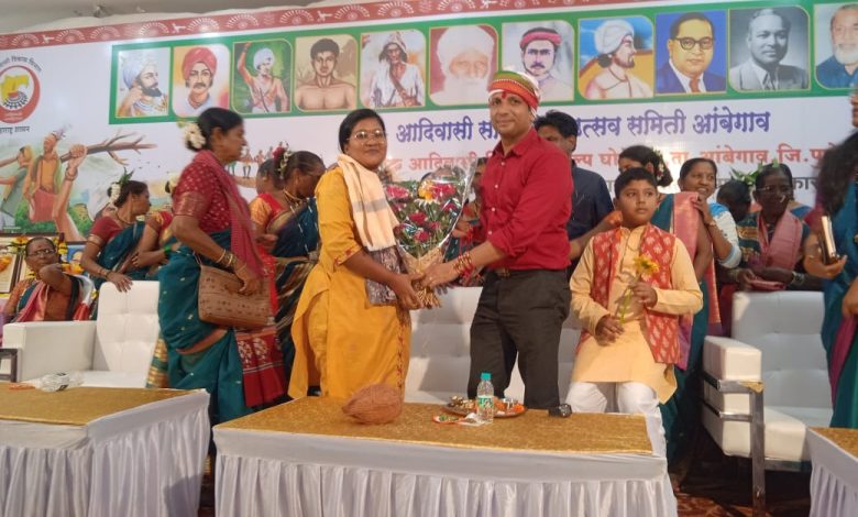 दर्पण न्यूज आंबेगाव :- आदिवासी विकास प्रकल्प घोडेगाव, आंबेगाव सांस्कृतिक उत्सव समिती आणि केंद्रीय दूरसंचार ब्युरो, पुणे यांच्या संयुक्त विद्यमाने घोडेगाव येथे जागतिक आदिवासी दिन मोठ्या उत्साहात साजरा करण्यात आला. या कार्यक्रमात हजारो आदिवासी बांधवांनी उत्स्फूर्तपणे सहभाग मुख्य कार्यक्रम घोडेगाव येथील वनमाला मंगल कार्यालयात पार पडला. कार्यक्रमाच्या अध्यक्षस्थानी बुधाजी डामसे होते. या प्रसंगी प्रमुख पाहुणे म्हणून राज्यमंत्री दर्जा असलेले म्हाडाचे शिवाजीराव अढळराव पाटील, आंबेगावचे आमदार . दिलीपराव वळसे पाटील, देवदत्त निकम साहेब, आदिवाशी पारधी समाजाचे समाजसेवक साहित्यिक नामदेव भोसले साहेब उपस्थित होते. या मान्यवरांनी आपल्या मनोगतातून आदिवासी समाजाच्या प्रगतीसाठी सुरू असलेल्या योजनांवर प्रकाश टाकला आणि आदिवासी बांधवांना शुभेच्छा दिल्या. प्रमुख वक्ते प्रा. हनुमंत भावरी यांनी आदिवासी विकासाबाबत मार्गदर्शन केले पत्रकार स्नेहा उत्तम मडावी यांचा सत्कार घोडेगावचे प्रकल्प अधिकारी पुणे प्रदीप देसाई यांच्या हस्ते करण्यात आला पत्रकार उपस्तित होते .कार्यक्रमात उपस्थित जनसमुदायाला आदिवासी विकासाच्या विविध योजनांच्या यशोगाथा स्क्रीनवर दाखवण्यात आल्या. या यशोगाथांनी उपस्थितांना प्रेरणा मिळाली. या कार्यक्रमाचे आणखी एक विशेष आकर्षण म्हणजे महाराष्ट्र शासनाने नागपूर येथे सुरू केलेल्या ‘राणी दुर्गावती आदिवासी महिला सक्षमीकरण योजना’चा शुभारंभ सोहळा थेट स्क्रीनवर दाखवण्यात आला. या थेट प्रक्षेपणाने उपस्थितांमध्ये उत्साहाचे वातावरण निर्माण झाले.कार्यक्रमाचे सूत्रसंचालन मोहन नंदकर यांनी केले. कार्यक्रमाचे प्रास्ताविक काळुराम भावरी यांनी केले. या कार्यक्रमाला प्रकल्प अधिकारी . प्रदीप देसाई, दुरसंचर विभागाचे फॅनिकुमार साहेब किरण गाभाले साहेब, सुभाष मोरमारे यांच्यासह शासकीय कार्यालयातील सर्व अधिकारी व कर्मचारी विविध समाजांतील संघटनांचे प्रतिनिधी आणि आर्दश माता शेवराबाई ज्ञानदेव भोसले लेखक भास्कर भोसले ऋतुजारांनी भोसले सुजाता भोसले सुरेखा भोसले सुजाता भोसले ग्रिष्म तुकाराम भोसले तुकाराम भोसले पत्रकार सुनिल ज्ञानदेव भोसले सामाजिक कार्यकर्ते मोठ्या संख्येने उपस्थित होते. हा कार्यक्रम आदिवासी संस्कृतीचा गौरव आणि समाजाच्या विकासाची दिशा दर्शवणारा ठरला.