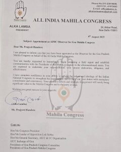 श्रीमती प्रज्योती चंद्रकांतजी हंडोरे यांची गोवा प्रदेश महिला काँग्रेससाठी AIMC निरीक्षक पदी नियुक्ती झाली आहे. या निवडीमुळे नक्कीच गोव्यातील महिलांना न्याय मिळेल.