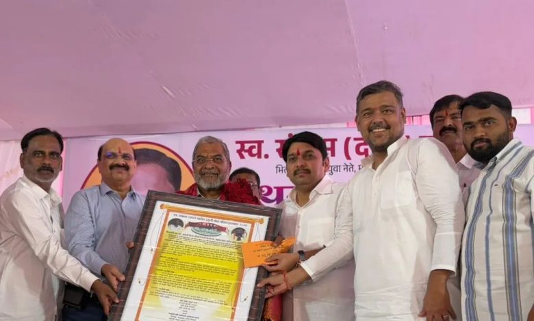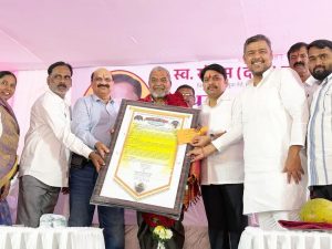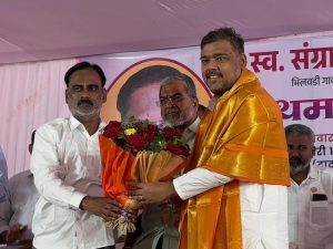 भिलवडी येथे माजी खासदार, स्वाभिमानी शेतकरी संघटनेचे संस्थापक राजू शेट्टी यांना स्व. संग्राम (दादा) पाटील स्मृती सेवा गौरव पुरस्काराने सन्मानित