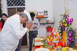 मिरज येथे पालकमंत्री चंद्रकांत दादा पाटील यांनी जनसुराज्य पक्षाचे प्रदेशाध्यक्ष समीत कदम यांच्या निवासस्थानी विराजमान गणरायाचे दर्शन घेत केली पूजा