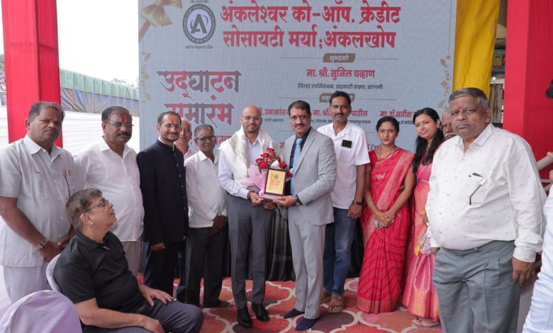 दर्पण न्यूज इस्लामपूर : अंकलेश्वर को-ऑपरेटिव्ह क्रेडिट सोसायटीच्या इस्लामपूर येथील सहाव्या शाखेचा भव्य उद्घाटन समारंभ मोठ्या उत्साहात पार पडला. यावेळी प्रमुख पाहुणे म्हणून माननीय श्री सुनील चव्हाण (जिल्हा उपनिबंधक सहकारी संस्था सांगली) व मा.श्री.उमाकांत कापसे (चार्टर्ड अकाउंटंट) व मा. श्री संभाजी पाटील (सह. निबंधक सहकारी संस्था इस्लामपूर वाळवा) व मा.डॉ. सतीश गोसावी (एमडी मेडिसिन) यांनी उपस्थित राहून संस्थेच्या अल्पावधीत झालेल्या उल्लेखनीय प्रगतीचे कौतुक केले.