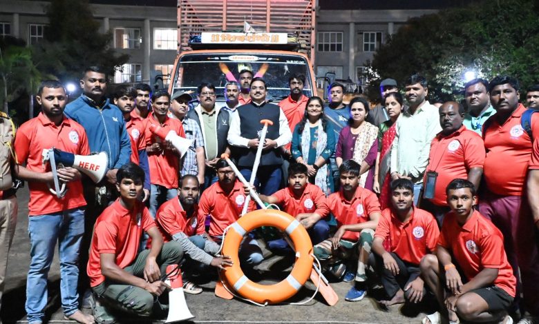 दर्पण न्यूज सांगली -: सोलापूर जिल्ह्यात अतिवृष्टीच्या तसेच भीमा व सीना नदीला सुरू असलेल्या विसर्गामुळे पूरपरिस्थितीच्या पार्श्वभूमिवर भीमेच्या मदतीला कृष्णा धावली असून सोलापूर जिल्हा प्रशासनाच्या मागणीनुसार सांगली जिल्ह्यातून ५ यांत्रिक बोटी व ४५ लाईफ जॅकेटसह १५ व्यक्तींचे पथक आज जिल्हाधिकारी अशोक काकडे यांच्या उपस्थितीत सोलापूरकडे रवाना झाले. यावेळी निवासी उपजिल्हाधिकारी डॉ. स्नेहल कनिचे, तहसीलदार डॉ. अपर्णा मोरे, लीना खरात, प्रभारी जिल्हा आपत्ती व्यवस्थापन प्राधिकारी विजय ढेरे, रफिक नदाफ, रॉयल कृष्णा बोट स्पोर्ट्स क्लबचे दत्ता पाटील आदि उपस्थित होते.