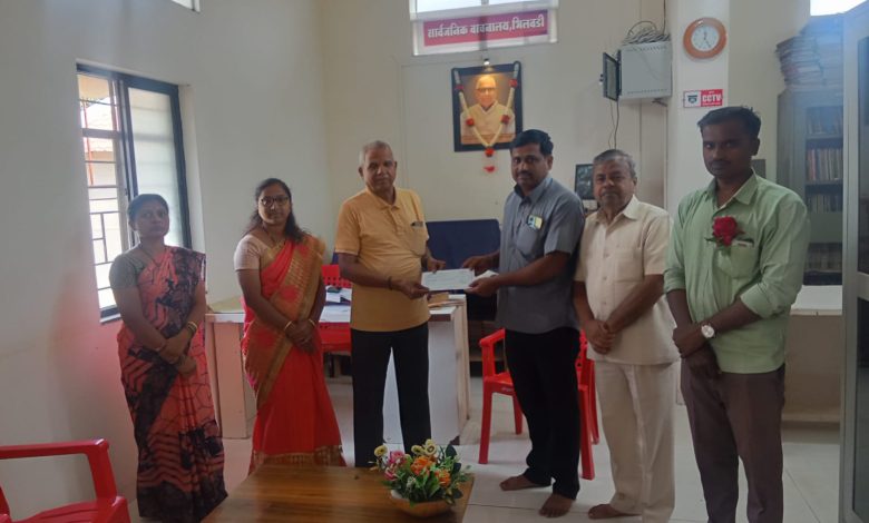 वाचनालयाचे कार्यवाह सुभाष कवडे यांच्याकडे धनादेश सुपूर्द