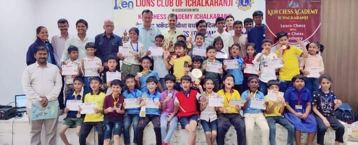 लायन्स क्लब ऑफ इचलकरंजी व केन चेस अकादमी इचलकरंजी आयोजित नऊ वर्षाखालील मुला-मुलींच्या बुद्धिबळ स्पर्धेत कोल्हापूरचा अवनीश जितकर अजिंक्य; बेळगावचा रिधान कलघटगी उपविजेता तर वैभववाडीचा विहान अस्पतवार तृतीय