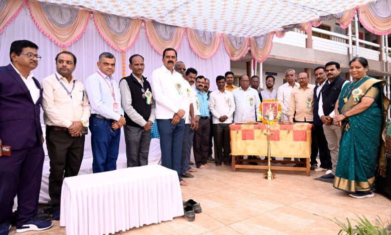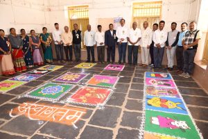 प्रारंभी मान्यवरांच्या हस्ते हस्तकला व रांगोळी प्रदर्शनाचे उद्घाटन करण्यात आले.