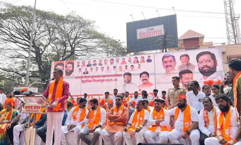 सांगली मिरज आणि कुपवाड महानगरपालिका सार्वत्रिक निवडणुकीनिमित्त एकनाथ शिंदे यांच्या शिवसेनेच्या प्रचाराचा शुभारंभ महाराष्ट्र राज्याचे पर्यटन, खानकाम आणि माजी सैनिक कल्याण मंत्री तथा सातारा जिल्ह्याचे पालकमंत्री शंभुराज देसाई यांच्या उपस्थितीत झाला.यावेळी आमदार मा. सुहास बाबर भैय्या, गौरव नायकवडी,रावसाहेब घेवारे, जिल्हा प्रमुख बजरंग पाटील, जिल्हा प्रमुख संजय विभुते, महानगर प्रमुख मोहन वनखंडे , सह संघटक महेंद्र चंडाळे, अरुण खरमाटे सर व पदाधिकारी कार्यकर्ते मोठ्या संख्येने उपस्थित होते .
