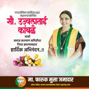 प्रदेश सचिव, भाजपा अल्पसंख्यांक मोर्चा, महाराष्ट्र राज्य यांनी वरील नगरसेवक यांचे अभिनंदन केले आहे.