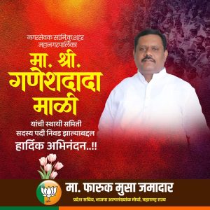 नगरसेवक गणेश माळी यांची स्थायी समिती सदस्य पदी, उज्ज्वला कांबळे यांची समाजकल्याण समितीच्या सदस्य पदी निवड ; प्रदेश सचिव, भाजपा अल्पसंख्यांक मोर्चा, महाराष्ट्र राज्याचे फारुक मुसा जमादार यांच्याकडून नगरसेवक यांचे अभिनंदन