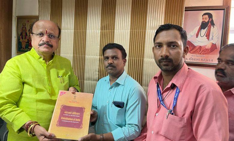 सांगली, : – डॉ.बाबासाहेब आंबेडकर संशोधन व प्रशिक्षण संस्था बार्टी, पुणे यांच्यामार्फत संत ज्ञानेश्वर महाराज आणि संत तुकाराम महाराज पालखी सोहळ्याबरोबर यावर्षीही “संविधान दिंडी” चे आयोजन करण्यात आले आहे. हा सुंदर आणि अत्यंत महत्वाचा स्तुत्य उपक्रम बार्टी संस्था करीत आहे. याकिरता पालकमंत्री डॉ. सुरेश खाडे यांनी सामाजिक न्याय व विशेष सहाय्य विभागाचे प्रधान सचिव सुमंत भांगे व बार्टीचे महासंचालक सुनील वारे व समतादूत प्रकल्प टीमचे अभिनंदन करून या उपक्रमास शुभेच्छा दिल्या. असे उपक्रम भविष्यात नियोजित करावेत, असे आवाहन पालकमंत्री डॉ. सुरेश खाडे यांनी केले.