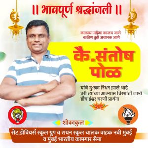 सातारा : शामगाव तालुका कराड जिल्हा सातारा येथील संतोष शामराव पोळ यांचे गुरूवार रात्री 12:30 वाजता निधन झाले. त्यांच्या पश्चात वडील, पत्नी, दोन मुली, भाऊ असा परिवार आहे .रक्षाविसर्जन कार्यक्रम रविवार दिनांक 23 जुलै रोजी सकाळी 10 वाजता शामगाव येथे आहे.