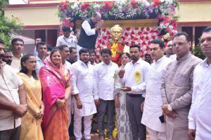 दरम्यान, सांगलीच्या पुष्कराज चौक येथील साहित्यरत्न लोकशाहीर अण्णा भाऊ साठे यांच्या पुतळ्यासही पालकमंत्री डॉ. सुरेश खाडे यांनी पुष्पहार अर्पण करून अभिवादन केले.