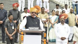 भारतीय स्वातंत्र्याच्या 76 व्या वर्धापन दिनानिमित्त जिल्हाधिकारी कार्यालयाच्या प्रांगणात पालकमंत्री डॉ. सुरेश खाडे यांच्या हस्ते ध्वजारोहण करण्यात आले. या मुख्य शासकीय ध्वजारोहण कार्यक्रमानंतर दिलेल्या शुभेच्छा संदेशात त्यांनी ही ग्वाही दिली. यावेळी महापौर दिग्विजय सुर्यवंशी, खासदार संजय पाटील, आमदार सुधीर गाडगीळ, पद्मश्री विजयकुमार शहा, जिल्हाधिकारी डॉ. राजा दयानिधी, जिल्हा परिषद पोलीस अधिक्षक डॉ. बसवराज तेली, मुख्य कार्यकारी अधिकारी तृप्ती धोडमिसे, महानगरपालिका आयुक्त सुनील पवार, सहाय्यक जिल्हाधिकारी अमित रंजन, अपर जिल्हाधिकारी डॉ. स्वाती देशमुख-पाटील, प्रभारी निवासी उपजिल्हाधिकारी आशिष बारकुल यांच्यासह विविध कार्यालय प्रमुख, स्वातंत्र्य सैनिक, वीरमाता, वीरपत्नी, नागरिक उपस्थित होते.