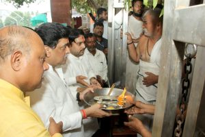भिलवड : माजी सहकार मंत्री डॉ विश्वजीत कदम यांच्या पुढाकाराने सांगली जिल्हा पलूस तालुका भिलवडी, औदुंबर येथे माजी मुख्यमंत्री अशोकराव चव्हाण यांचे जोरदार स्वागत करण्यात आले. औदुंबर येथे चव्हाण यांनी श्री क्षेत्र औदुंबर दत्त दर्शन घेतले.