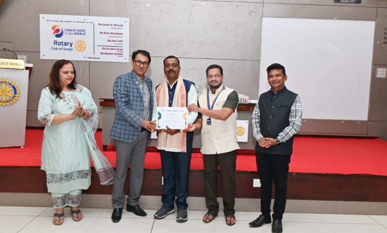 रोटरी क्लब ऑफ सांगलीचे चेअरमन सलील लिमये यांनी प्रास्ताविक व स्वागत केले.चिदंबरम मगदूम यांनी सूत्रसंचालन केले.अजय शहा यांनी आभार मानले.यावेळी रोटरीचे सेक्रेटरी महेश झंवर,रागिणी शहा,रामकृष्ण चितळे,अरुण दांडेकर,उद्योजक गिरीश चितळे, डॉ.सुहास जोशी, किशोर लुल्ला,सुधा कुलकर्णी, डॉ.चंद्रशेखर पुरंदरे,अमित चोरडिया आदींची प्रमुख उपस्थिती होती.