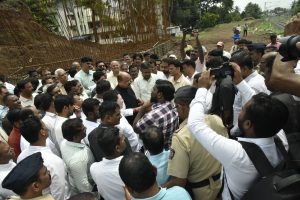 तत्पूर्वी पालकमंत्री डॉ. सुरेश खाडे यांनी सांगली-तासगाव रोडवरील चिंतामणीनगर येथील रेल्वे उड्डाण पुल बांधकाम परिसराची पाहणी केली. उड्डाण पूल, परिसरातील नागरिकांसाठी पर्यायी मार्ग याबाबत अधिकारी व नगरिकांशी चर्चा केली व या परिसरातील नागरिकांच्या समस्या सोडवण्यास प्राधान्य दिले जाईल असे उपस्थित नागरिकांना आश्वासित केले. यावेळी जिल्हाधिकारी डॉ. राजा दयानिधी, महापालिका आयुक्त सुनील पवार, मध्य रेल्वेच्या दक्षिण झोनचे मुख्य अभियंता सुरेश पाखरे, सार्वजनिक बांधकाम विभागाचे कार्यकारी अभियंता क्रंतीकुमार. मिरजकर, महापालिकेचे उपायुक्त राहुल रोकडे, रेल्वेचे अधिकारी शंभो चौधरी व परिसरातील नागरिक उपस्थित होते.