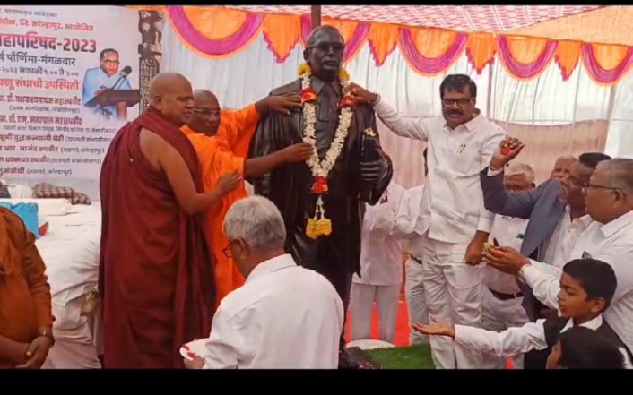 जयसिंगपूर येथे धम्म महापरिषदेदिनी उद्योगपती सी.आर. सांगलीकर यांच्या हस्ते डॉ. बाबासाहेब आंबेडकर यांच्या पुतळ्याचे दिमाखात अनावरण