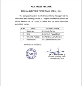 माजी समाज कल्याण मंत्री चंद्रकांत हांडोरे यांची महाराष्ट्र राज्यातून काँग्रेस पक्षाकडून राज्यसभेसाठी उमेदवारी जाहीर