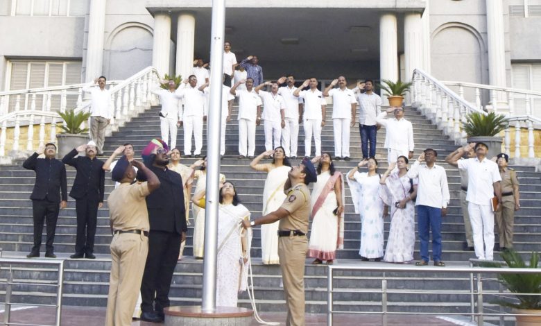 जिल्हाधिकारी कार्यालयाच्या प्रांगणात ध्वजारोहण