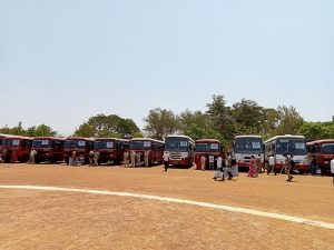 मतदान केंद्रावरील नियुक्त अधिकारी, कर्मचारी यांना मतदान केंद्रावर घेऊन जाण्यासाठी एस. टी. बसेस व अन्य वाहनांची सोय करण्यात आली असून या वाहनातून मतदान केंद्रांवरील अधिकारी, कर्मचारी त्यांना नेमून दिलेल्या केंद्रावर रवाना झाले.
