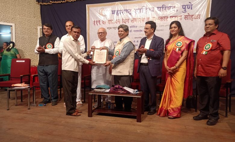 यावेळी साहित्य परिषदेचे कार्याध्यक्ष अध्यक्ष प्रा .मिलिंद जोशी, प्रमुख कार्यवाह सुनिताराजे पवार,अंजली कुलकर्णी,विनोद कुलकर्णी,डॉ.पुरुषोत्तम काळे आदी मान्यवर उपस्थित होते.या पुरस्काराबद्दल त्यांचे ग्रामस्थ,माजी विद्यार्थी व साहित्यिक परिवरांकडून अभिनंदन करण्यात येत आहे.