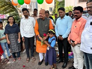 शैक्षणिक वर्ष २०२४-२०२५ च्या शाळेच्या आजच्या पहिल्या दिवशी सांगली येथील स्फुर्ती चौकातील महानगरपालिकेच्या शाळा क्र. ७ मध्ये पालकमंत्री डॉ. सुरेश खाडे यांनी  मुलांचे गुलाबपुष्प व रोपटे देवून स्वागत केले. यावेळी उपस्थित विद्यार्थी, पालक, शिक्षक यांच्याशी संवाद साधताना पालकमंत्री डॉ. खाडे यांनी या भावना व्यक्त केल्या. यावेळी महानगरपालिका अतिरिक्त आयुक्त रविकांत आडसूळ, उपायुक्त शिल्पा दरेकर, शिक्षण विभाग प्रशासन अधिकारी रंगराव आठवले, मुख्याध्यापिका स्मिता सौंदत्ते, कार्यक्रम अधिकारी सतिश कांबळे, राकेश दड्डणावर यांच्यासह शिक्षक व पालक उपस्थित होते.