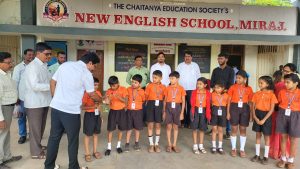 उद्योगपती सी.आर.सांगलीकर यांनी मिरज येथे न्यू इंग्लिश स्कूलच्या विद्यार्थ्यांचे केले स्वागत
