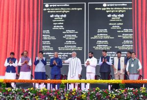 · मुंबईतील गोरेगाव स्थित नेस्को प्रदर्शन केंद्र येथे आयोजित कार्यक्रमात प्रधानमंत्री यांनी 29 हजार कोटी रुपयांहून अधिक खर्चाच्या रस्ते, रेल्वे आणि बंदर क्षेत्राशी संबंधित विविध प्रकल्पांचे उद्घाटन, लोकार्पण आणि पायाभरणी करण्यात आली.