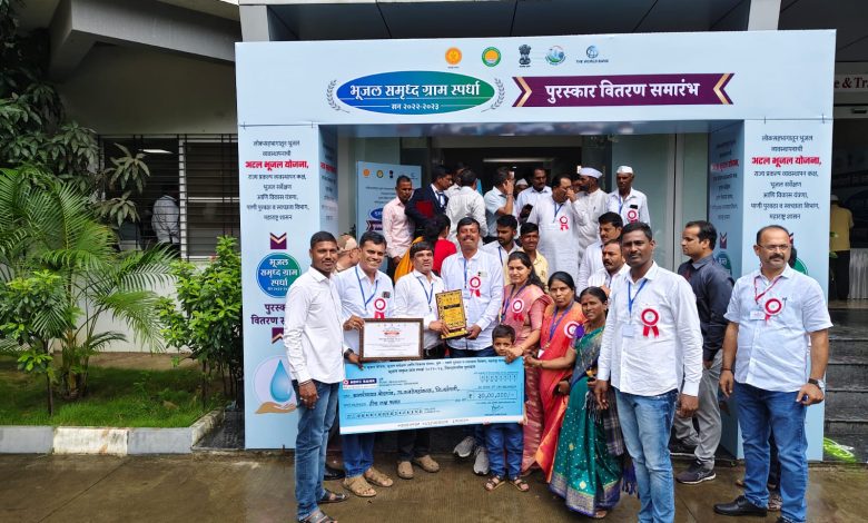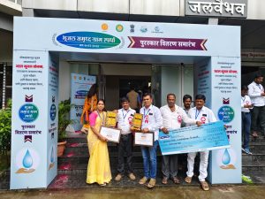 यावेळी राज्याचे सार्वजनिक बांधकाममंत्री तथा नाशिकचे पालकमंत्री दादा भुसे व पाणी पुरवठा व स्वच्छता मंत्री गुलाबराव पाटील यांच्या संयुक्त हस्ते सरपंच सौ स्मिता नामदेव पाटील,उपसरपंच सुजित पाटील ग्रामसेवक सुधीर बनसोडे यांना सदर पुरस्कार देऊन गौरविण्यात आले.यावेळी ग्रामपंचायत सदस्य सर्वश्री रमेश जाधव,वनिता माने, सरस्वती पवार, माजी उपसरपंच नामदेव पाटील वरिष्ठ भुवैज्ञानिक श्रीम. सुजाता सावळे कनिष्ठ भू वैज्ञानिक अमित जिरंगे माहिती संवादतज्ञ् कुणाल शितोळे dip समन्वक ज्ञानु कांबळे माहिती संवाद तज्ञ् हणमंत कोळेकर विस्तार अधिकारी ज्ञानेश्वर गुरव सह ग्रामस्थ उपस्थित होते.यावेळी सदर पुरस्कार हा भूजल समृद्ध गाव योजनेसाठी संपूर्ण गावाने एकोप्याने व झपाटुन काम केल्यानेच हे यश मिळाल्याचे सरपंच स्मिता पाटील यांनी सांगितले.