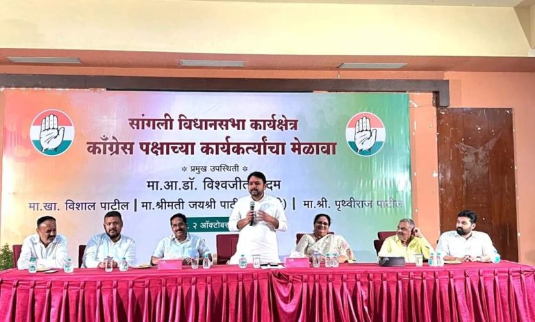सांगली येथे सांगली विधानसभा कार्यकर्ता मेळावा : मोठ्या संख्येने काँग्रेस प्रेमींची उपस्थिती
