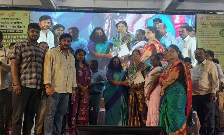 सांगली : टीबी मुक्त भारत| आरोग्य सार्वजनिक विभाग राष्ट्रीय क्षयरोग दूरीकरण कार्यक्रम | टीबी मुक्त ग्रामपंचायत अभियान | अंतर्गत जिल्हास्तरीय पुरस्कार वितरण कार्यक्रमाचे आयोजन करण्यात आले होते. यावेळी प्राथमिक आरोग्य केंद्र भिलवडी अंतर्गत उपकेंद्र -भिलवडी स्टेशन अंतर्गत भिलवडी व माळवाडी गावांचा सत्कार मुख्य कार्यकारी अधिकारी तृप्ती दोडपिसे यांच्या हस्ते आज दिनांक 9/10/2024 रोजी डेक्कन मॅन्युफॅक्चरिंग हॉल सांगली येथे करण्यात आला.