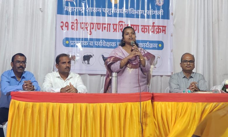 शेतकरी भवन मिरज येथे प्रगणक व पर्यवेक्षक यांच्यासाठी आयोजित 21 वी पशुगणना जिल्हास्तरीय द्वितीय प्रशिक्षण कार्यक्रम प्रसंगी त्या बोलत होत्या. यावेळी जिल्हा पशुसंवर्धन उपायुक्त सांगली डॉ. अजयनाथ थोरे, जिल्हा पशुसंवर्धन अधिकारी जि.प. सांगली डॉ. सतीशकुमार जाधव, महानगरपालिका आरोग्य अधिकारी डॉ. रविन्द्र ताटे, सहा आयुक्त. डॉ. महादेव गवळी आदी मान्यवर उपस्थित होते.