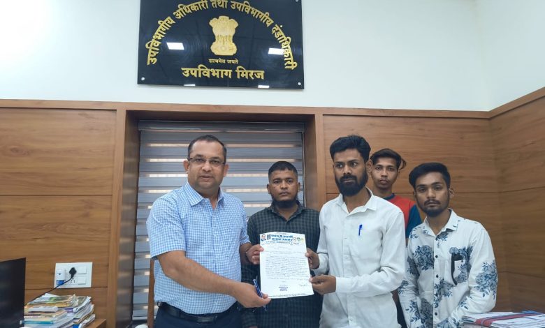 सांगली : सांगली जिल्हा भीम आर्मी संविधान रक्षक बलच्या वतीने प्रांताधिकारी दिघे साहेब यांना परभणी येथील घटनेचा तीव्र शब्दात निषेध करून निवेदन घेण्यात आले. यावेळी प्रांताधिकारीने तातडीने वरिष्ठांना या संदर्भात माहिती देऊन कारवाई करण्यात यावी म्हणून निवेदन वरिष्ठ पातळीवर पाठवण्यात येईल असे भीम आर्मीच्या कार्यकर्त्यांना प्रांताधिकारी दिघे साहेब यांनी सांगितले