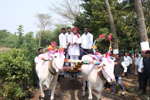 बैलगाडीवरून दमदार आगमन